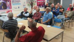 après nettoyage et nouvel équipement des locaux ! Répétition générale pour l’AG du 28 avril : Loîc présente son travail de présentation des documents sur l’écran … posé quelques jours plus tôt par les techniciens…